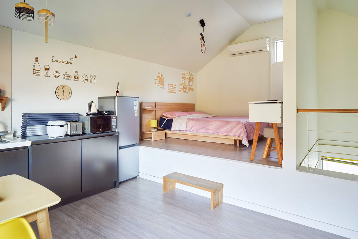 가스레인지/인덕션, 개별/테라스바베큐, 냉장고, 드라이기, 쇼파, 식탁, 에어컨, 욕실용품, 전기밥솥, 전자레인지, 취사도구, 커피포트, 타월, TV, 비데